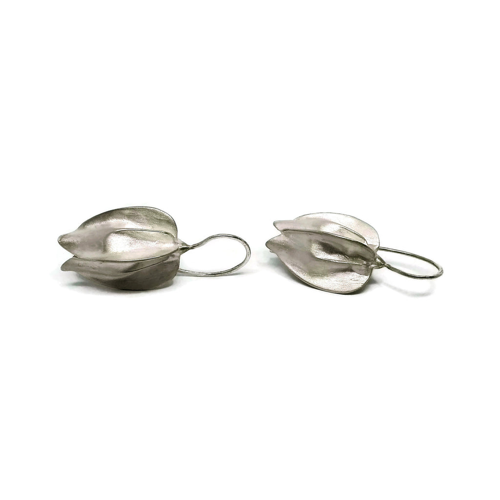 Jedes Paar dieser botanischen Ohrringe sind per Hand aus Wachs modelliert und dann in Silber gegossen (Wachsausschmelzverfahren) daher gibt es leichte Unterschiede, was den Unikatcharakter unterstreicht. Die Oberfläche ist hell und seidenmatt gebürstet - sehr elegant.